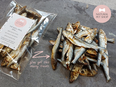 Fishy, crispy and absolutely delicious. These air-dried sprats are rich in Omega 3, making them perfect for supporting healthy skin and coats!Suita...
